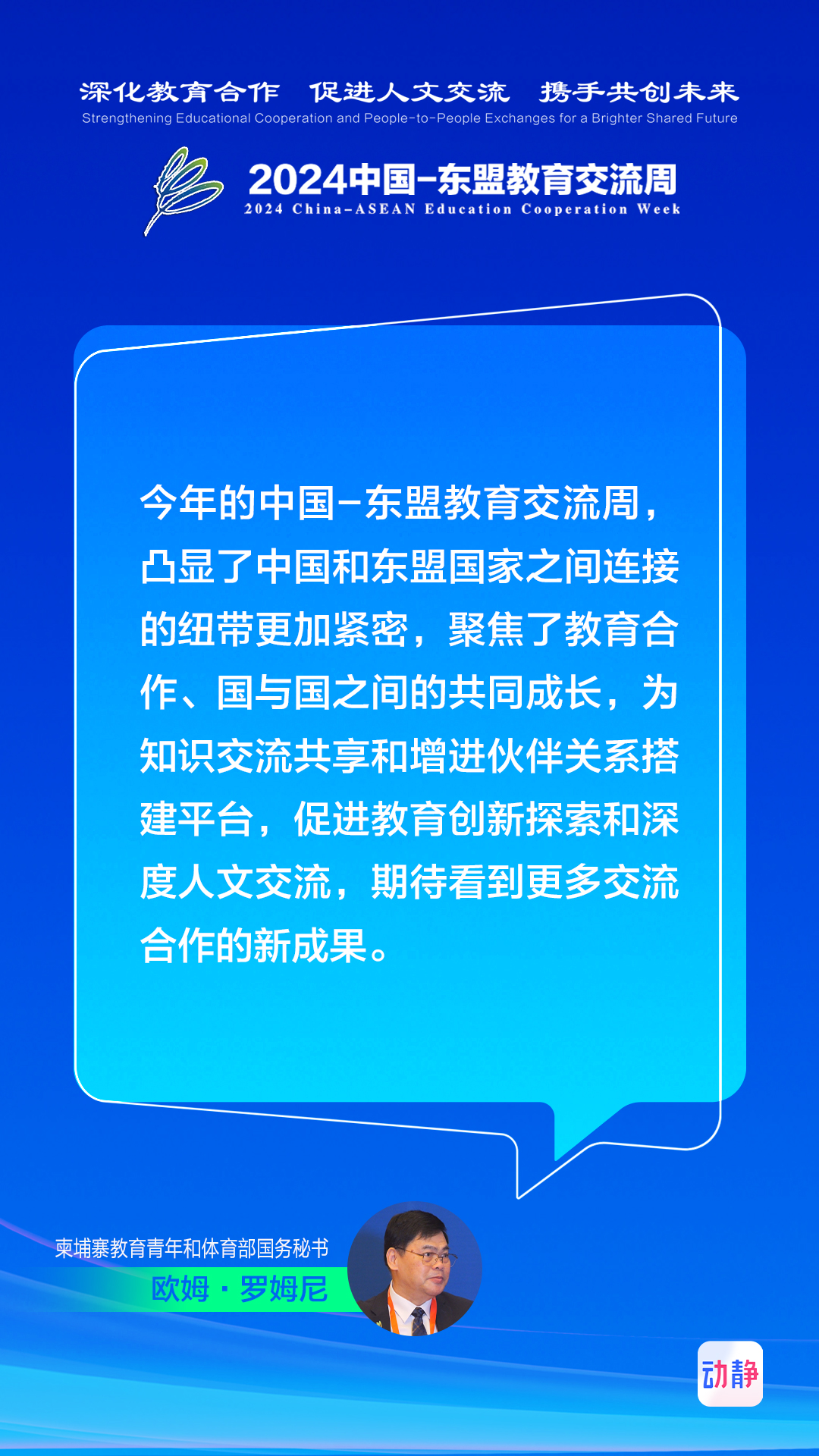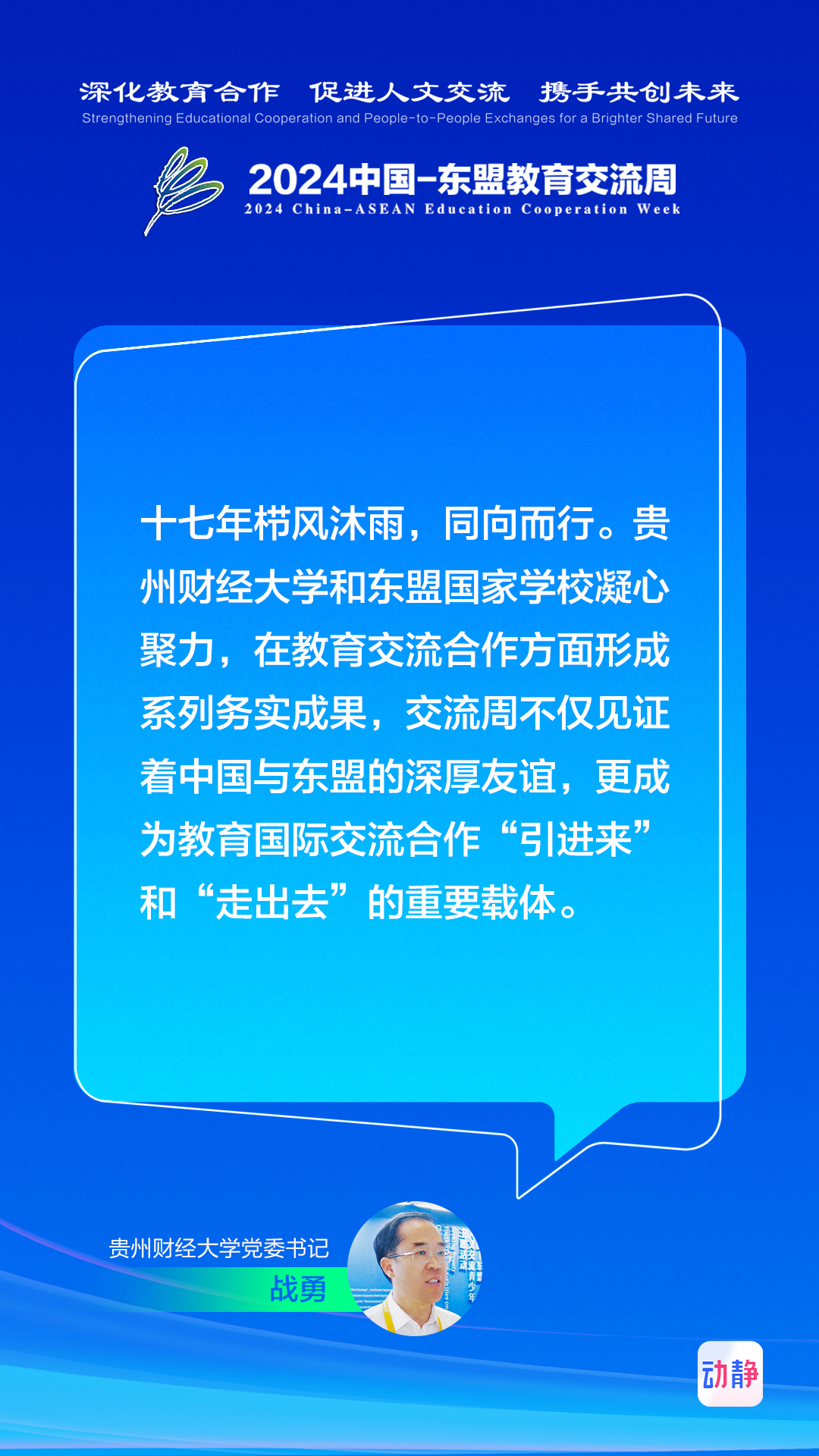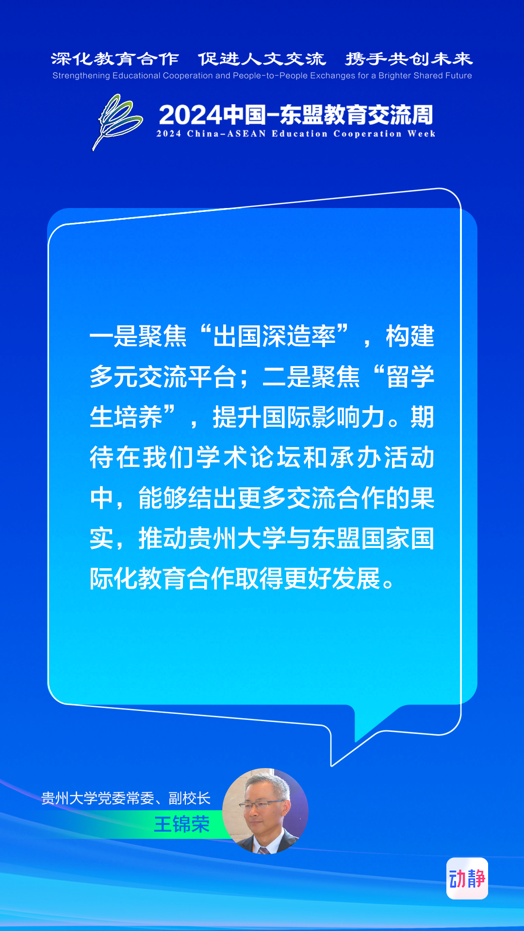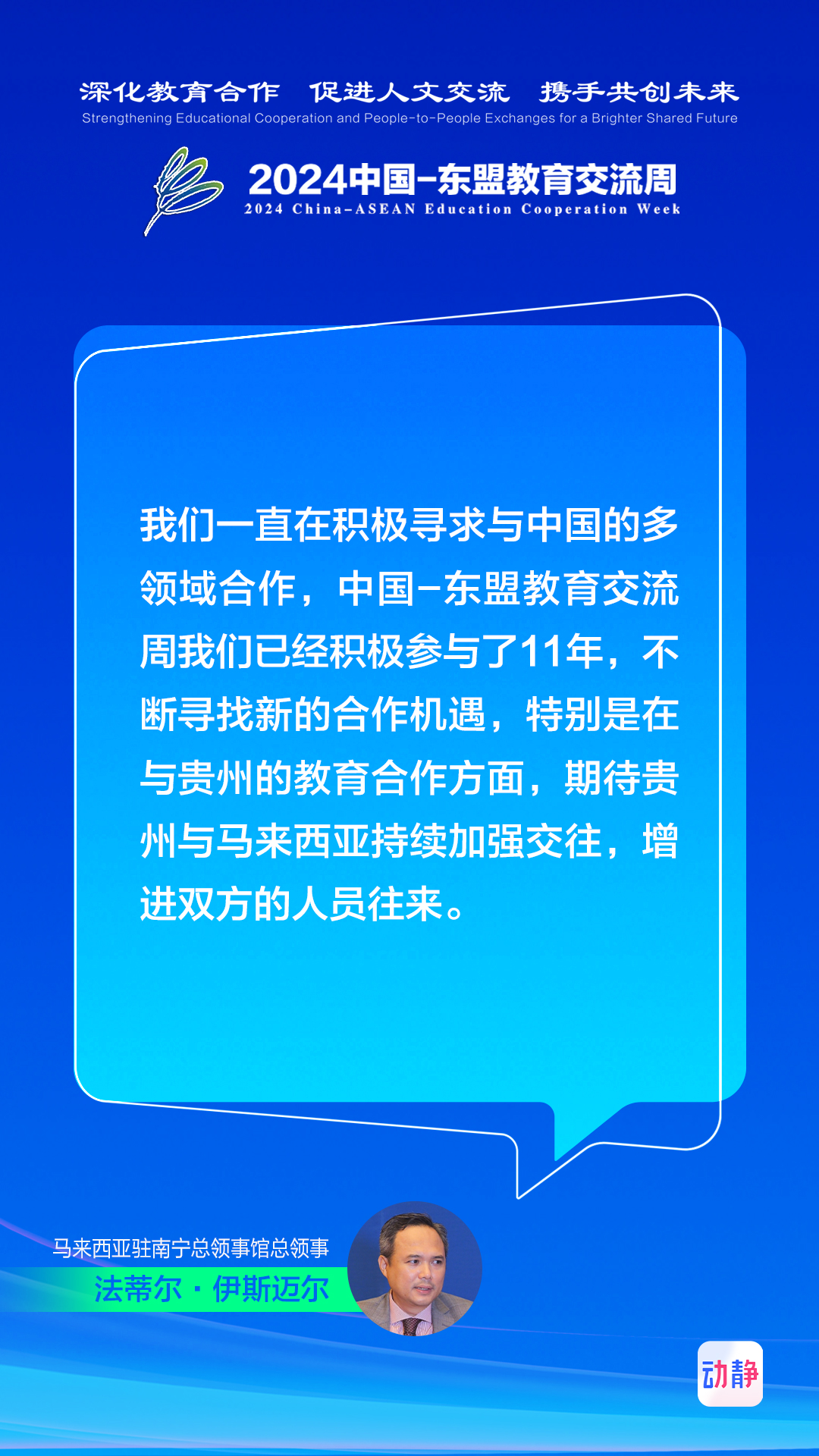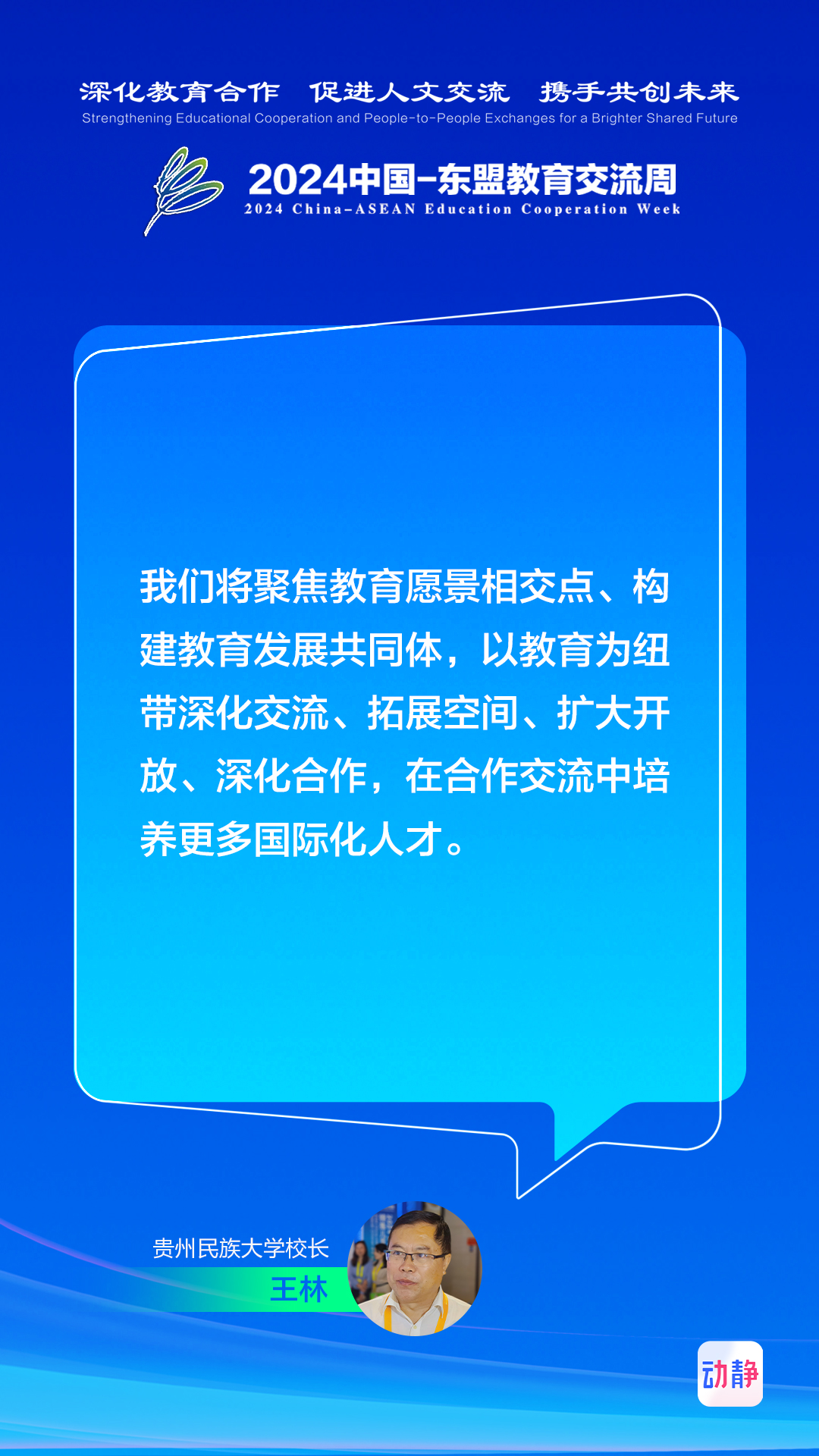 8月20日至8月25日,2024中国—东盟教育交流周在贵阳举行。动静记者专访了多位参会的国内外嘉宾,畅谈深化教育合作、促进人文交流、携手共创未来。制图:张璐记者:时小千 田婷婷 杨民铭 汪汐 王昱雯 王涛