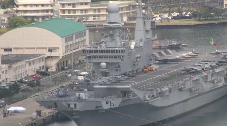 记者当地时间8月22日获悉,当天意大利“加富尔”号航母首次停靠日本。