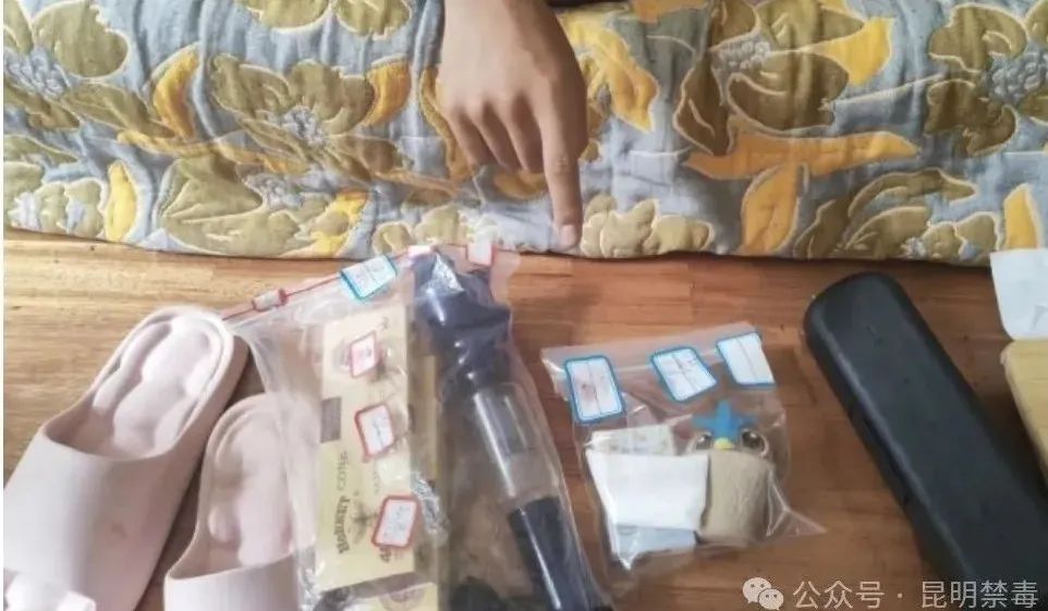 期间,民警还查获了涉毒违法人员的毒品吸食工具和疑似毒品残留物。