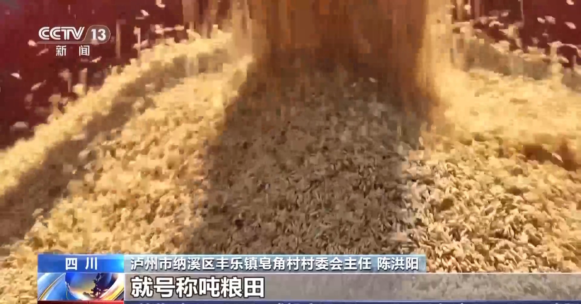 泸州市纳溪区丰乐镇皂角村村委会主任 陈洪阳:年亩产达到2000斤,号称吨粮田。今年是我们皂角村种植水稻以来,产量最高的一年。