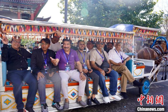 乘坐街区特色的电驱动马车,巴基斯坦媒体人一行穿过喀赞其街道,路过街边鲜艳的蓝色房子,与晒太阳的各族居民和来自世界各地的游客互相挥手致意。