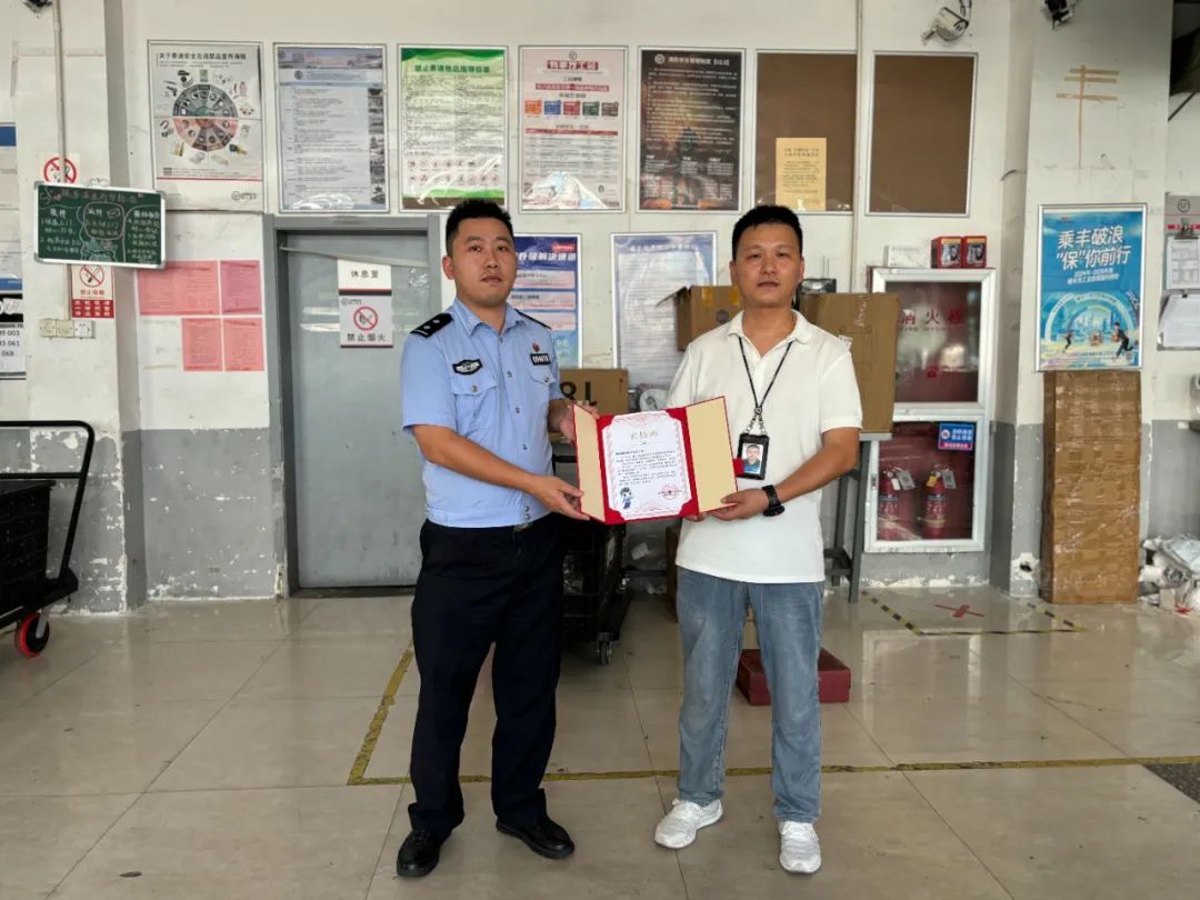 ▲派出所里,民警和预警员对袁先生进行反诈宣传