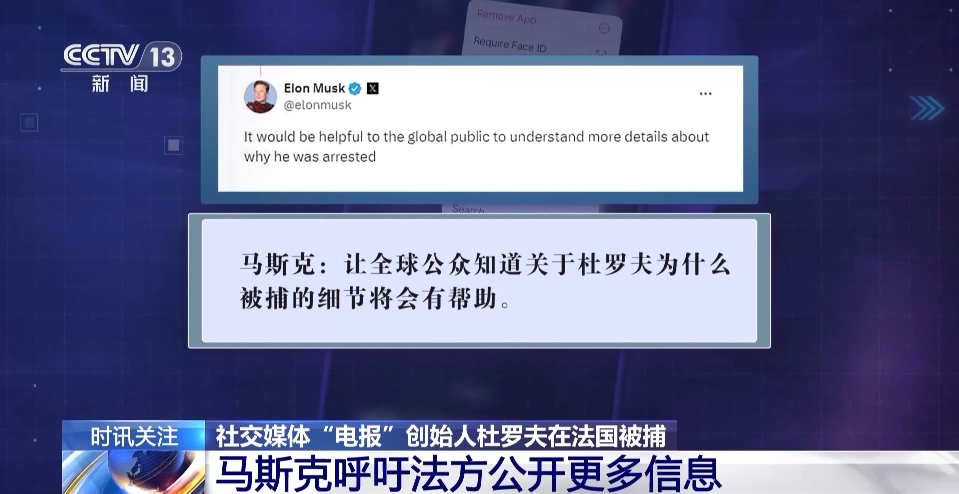 26日,法国总统马克龙在社交媒体X上发帖,否认杜罗夫被捕是政治决定,他表示,法国是“法治社会”。不过,美国社交媒体平台X的拥有者马斯克随后在这则帖子的评论区呼吁更多的信息公开,他称,“让全球公众知道关于杜罗夫为什么被捕的细节将会有帮助”。