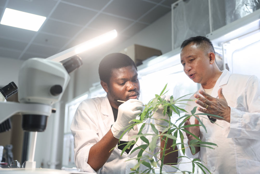 去年7月,“95后”尼日利亚留学生奥卢沃莱·格雷戈里来到中国热带农业科学院(以下简称“中国热科院”)环境与植物保护研究所热带果蔬害虫研究组,开展木薯虫害绿色综合防控相关研究,他的导师是中国热科院研究员陈青。