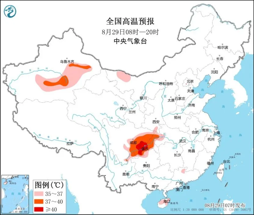 8月29日11时10分,重庆市气象台发布高温红色预警,这也是重庆连续九天发布此预警。