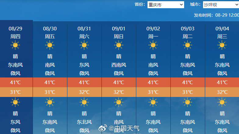 据@中国天气 8月30日预报,四川盆地正经历同期罕见高温,川渝地区高温酷热天气或持续至9月上旬。