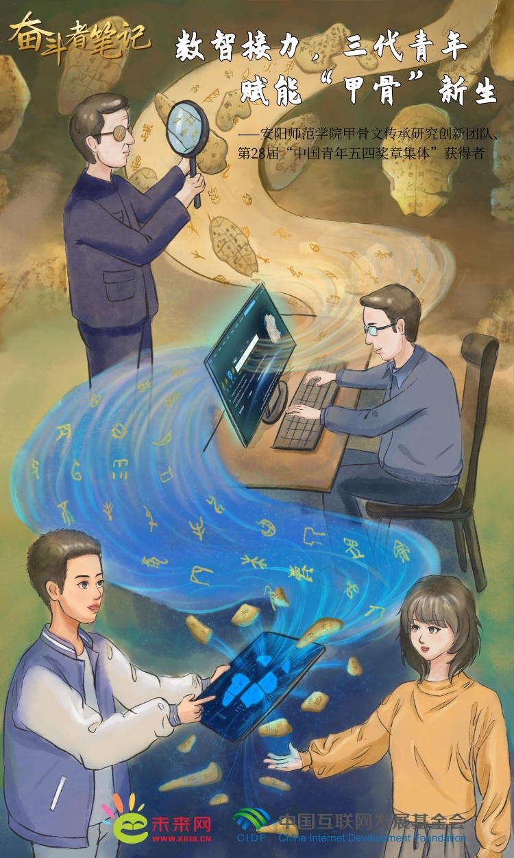 近日,位于河南安阳的殷墟博物馆迎来了2月26日新馆开馆以来的第100万名游客。随着殷墟博物馆人气持续火爆,讲好殷墟故事、传承中华文明,有了更生动的落脚。而在殷墟诸多考古发现中,甲骨文是最重要的发现之一。有这么一群人,甘坐“冷板凳”,跨越三代青春接力深耕甲骨文研究,让沉睡了千年的文字搭载现代科技,焕发出新的生机与活力。他们,就是获评第28届“中国青年五四奖章集体”的安阳师范学院甲骨文传承研究创新团队。