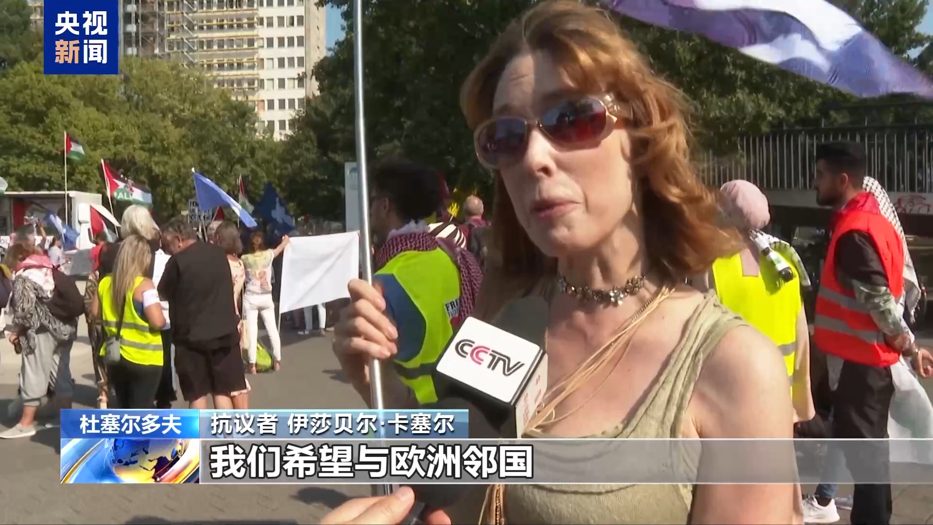 抗议者 伊莎贝尔·卡塞尔:我们希望与欧洲邻国、与全世界建立和平及良好的关系,我认为俄罗斯也是欧洲的一部分,我们也希望建立良好的欧亚关系。但德国政府在某种程度上结束了所有的(对俄)外交活动,这太遗憾了,他们向乌克兰运送武器的做法就是在火上浇油。
