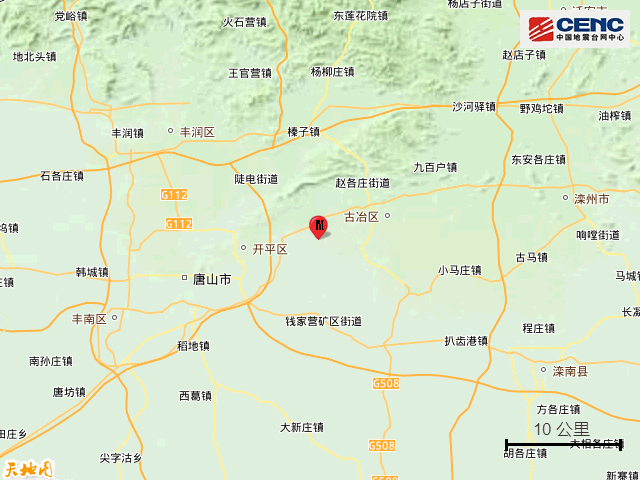 速报参数: 据中国地震台网正式测定,9月1日6时11分在河北唐山市开平区发生2.2级地震,震源深度9公里,震中位于北纬39.68度,东经118.36度。