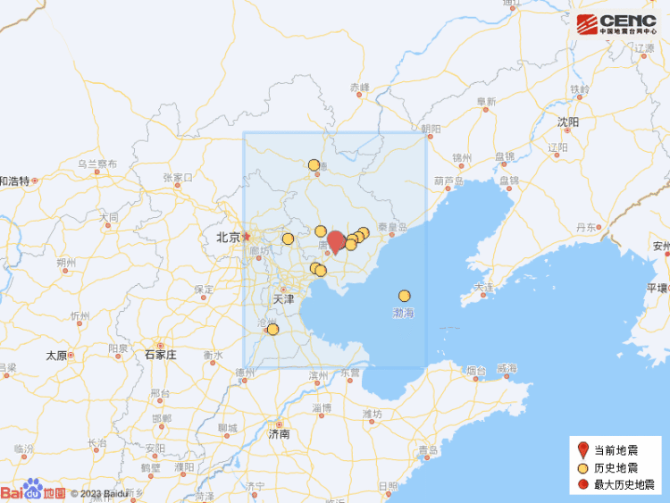 历史地震: 根据中国地震台网速报目录,震中周边200公里内近5年来发生3级以上地震共12次,最大地震是2020年7月12日在河北唐山市古冶区发生的5.1级地震(距离本次震中13公里),历史地震分布如图。