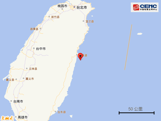 速报参数: 据中国地震台网正式测定,9月1日2时21分在台湾花莲县海域发生4.0级地震,震源深度10公里,震中位于北纬23.87度,东经121.70度,距台湾岛约10公里。