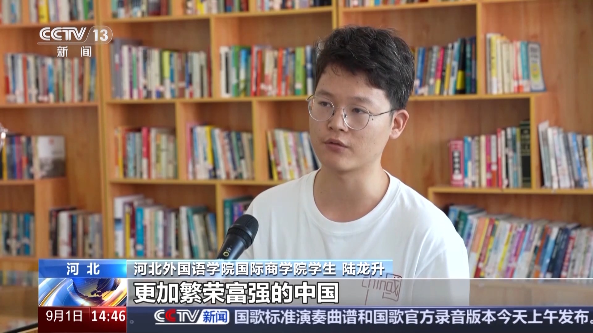 河北外国语学院国际商学院学生 陆龙升:我想通过自己的努力,以后可以让更多的外国人看到真实的中国,更加繁荣富强的中国。