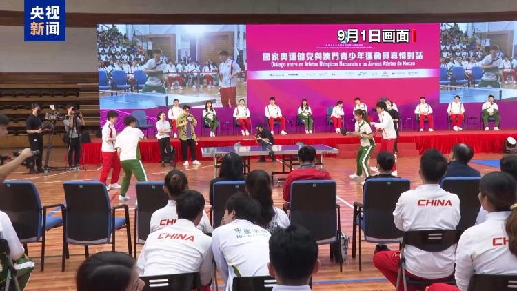 总台记者 刘冰清:奥运健儿在出席多场活动中与澳门各界人士真情交流、亲切互动,分享他们的奥运故事,展现他们的体育风采。1日上午,奥运健儿与600多名澳门青少年运动员近距离交流互动,切磋技艺。包括马龙、全红婵在内的8名运动员分享了他们克服困难和伤病、坚持梦想以及为国争光的奋斗经历。他们永不放弃的体育精神也感染了现场的青少年运动员。