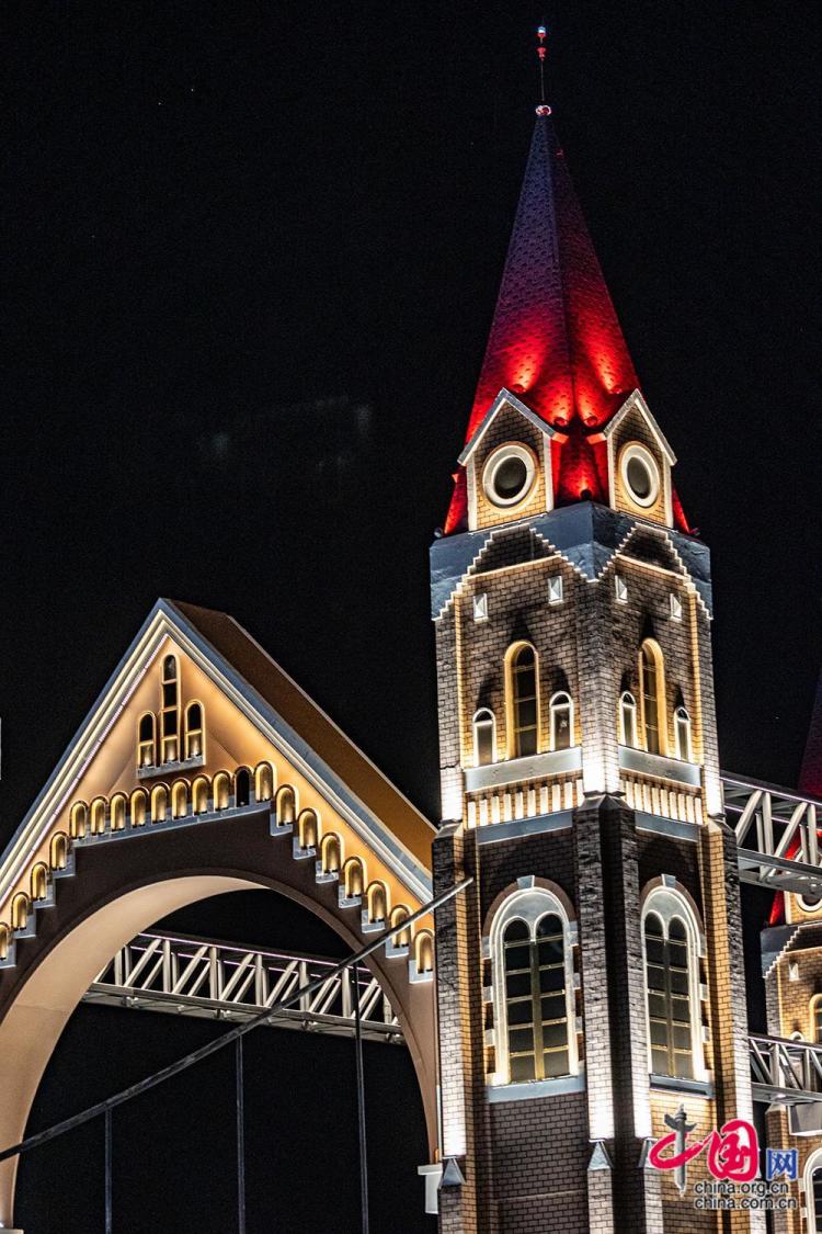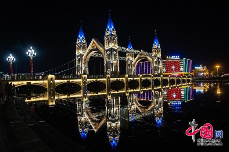 8月27日,新疆阿勒泰地区布尔津县喀纳斯塔桥夜景璀璨。喀纳斯塔桥采用哥特式与欧式结合风格设计,横跨七彩河。中国网记者 伦晓璇 摄