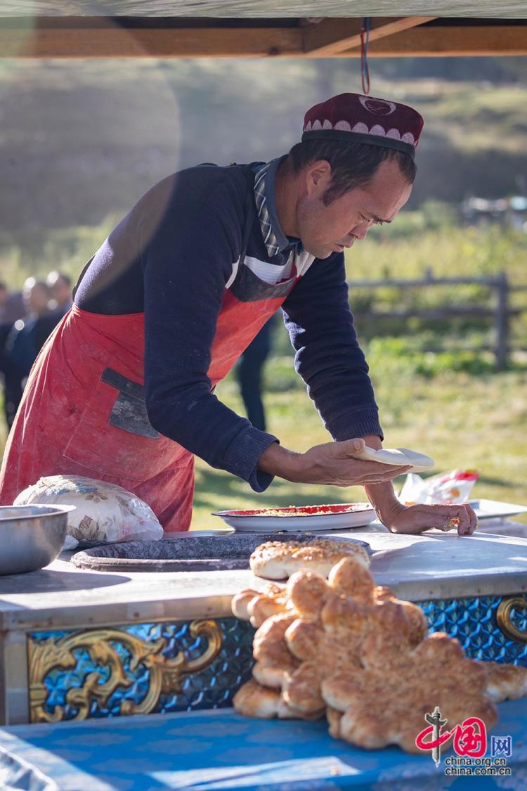 图为8月29日,在新疆维吾尔自治区禾木哈纳斯蒙古族乡,一家民宿的工作人员正在制作新疆特色美食烤馕。中国网记者 伦晓璇摄
