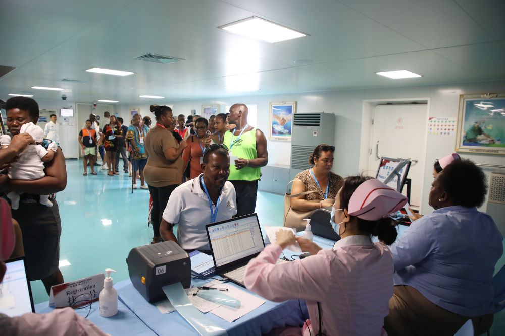 2024年8月12日,中国海军“和平方舟”号医院船在莫桑比克马普托开展医疗服务。
