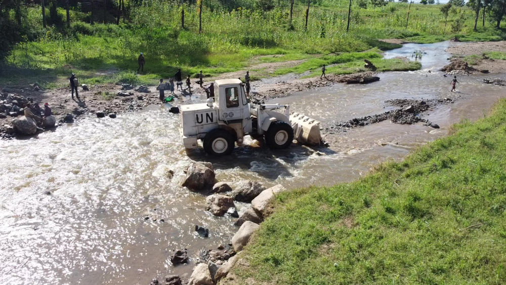 2023年6月7日,在刚果(金)南基伍省卡莱亥地区,中国第26批赴刚果(金)维和工兵分队官兵进行施工作业。