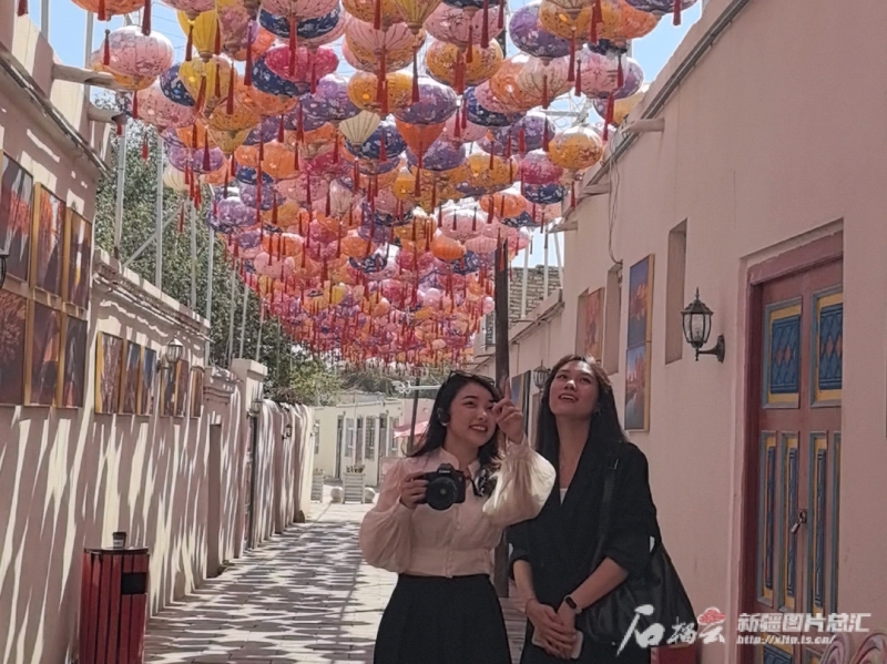 在中国人民大学伊拉克籍留学生莉娜眼中,新疆是五彩斑斓的。走进库车市龟兹小巷,莉娜仿佛步入了一幅色彩绚丽的画卷。土黄色的墙壁散发着古老的韵味,蓝色的门窗如同澄澈的天空之眼。小巷中,五彩的艾德莱斯绸在风中舞动,红色的石榴花热烈绽放。
