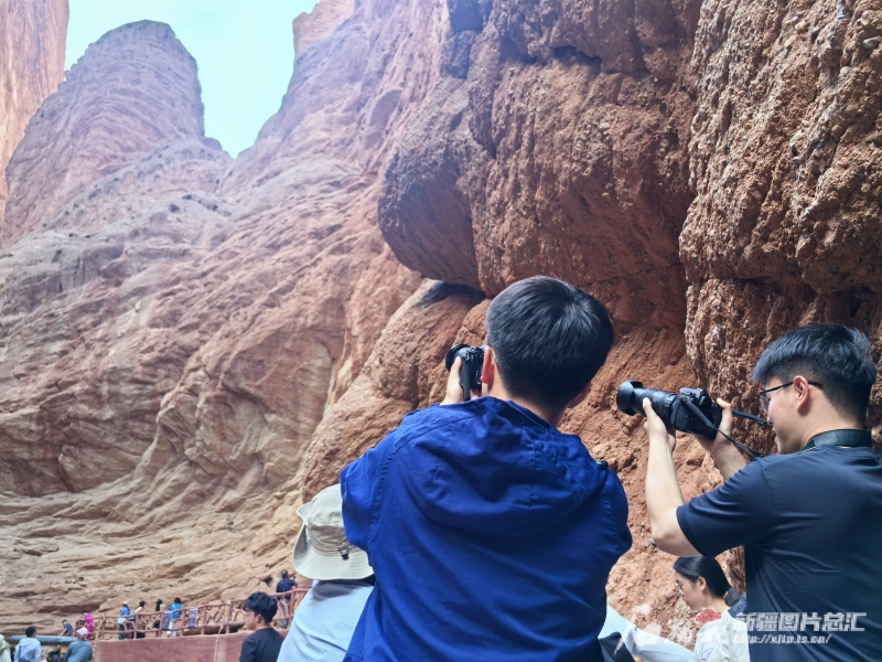 在天山神秘大峡谷,中国人民大学港澳台学生用相机记录眼前的壮美景观。石榴云/新疆日报记者 马蓓摄