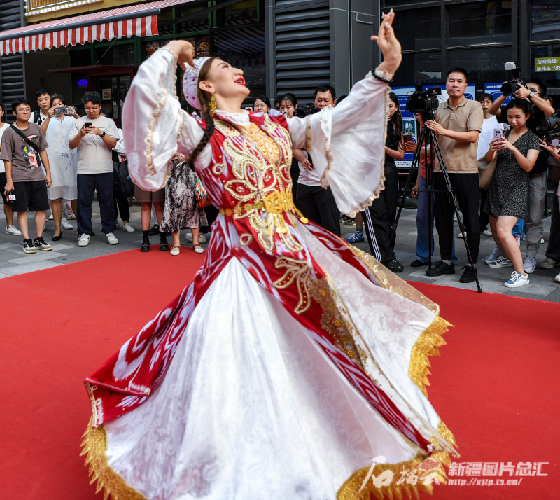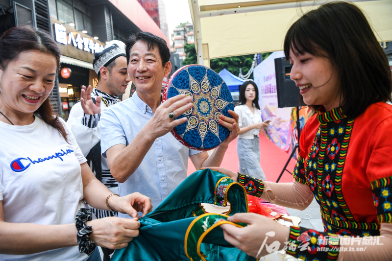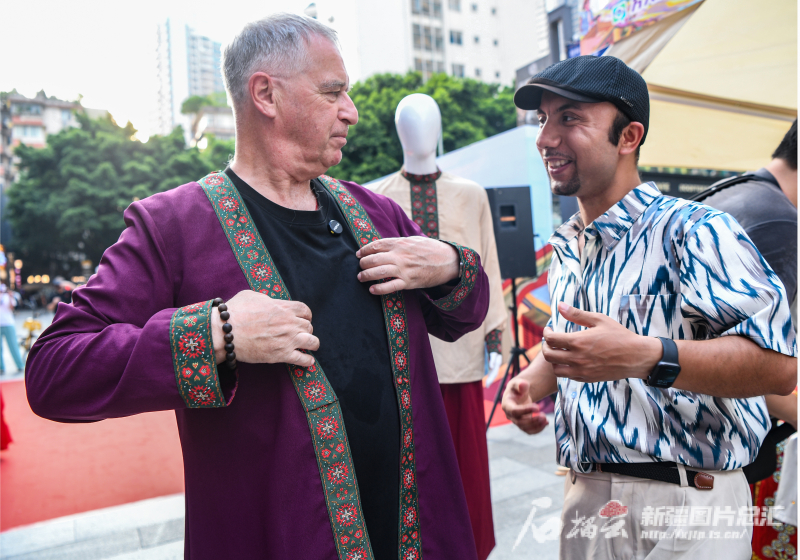 石榴云/新疆日报讯(记者 周鹏摄影报道)体验新疆“大巴扎”的热闹、欣赏热情的舞蹈表演、品尝地道美食特产、试穿民族服饰……9月2日,广州市的市民在家门口近距离感受到了新疆魅力。