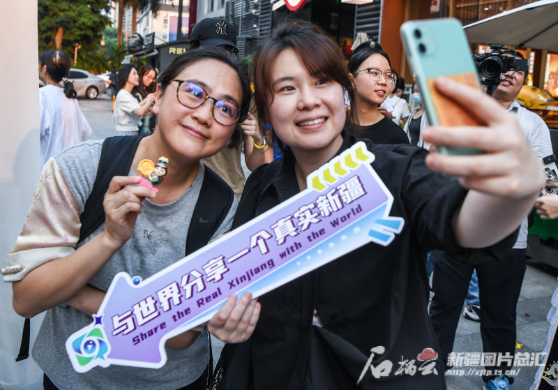 9月2日,广州市市民在广州市289艺术园区“新疆文化集市”打卡拍照。