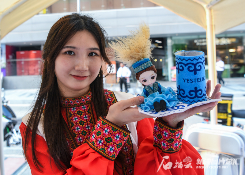 9月2日,工作人员在广州市289艺术园区“新疆文化集市”向广州市民推荐新疆文创产品。