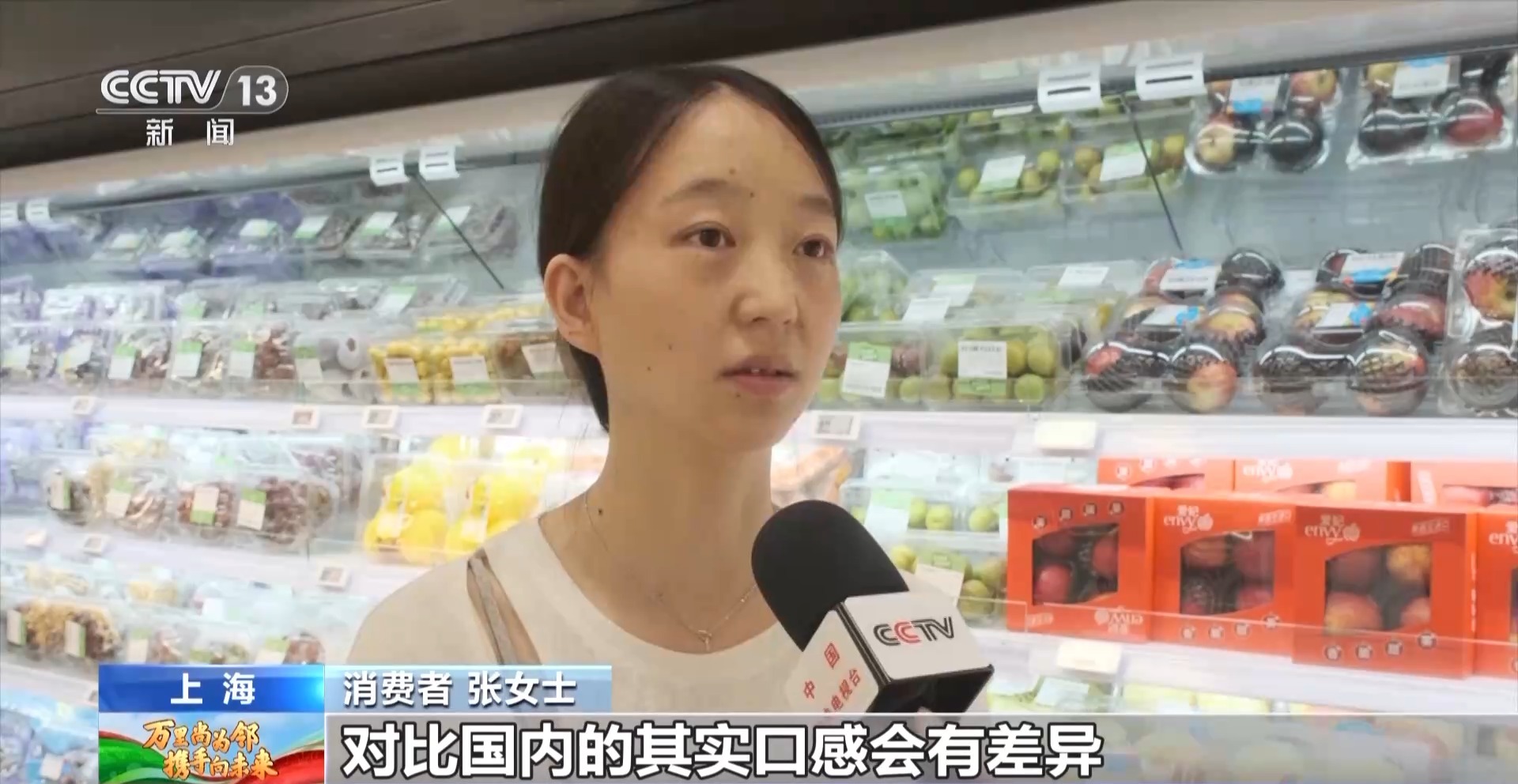 消费者 张女士:对比国内的水果口感会有差异,有它特殊的风味在,我也经常会选一些进口的品种来试试。