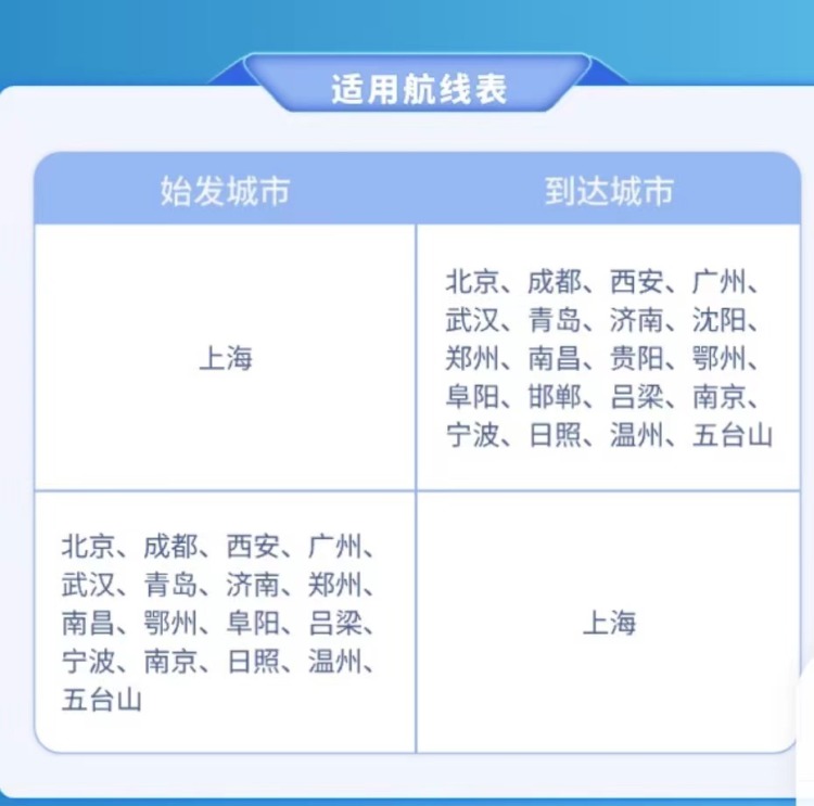 “爱达·魔都号+国产大飞机C919”联合套票适用航线表。 中船邮轮 图