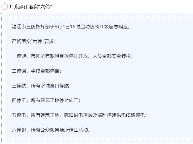 当前,广东、海南已宣布“六停”