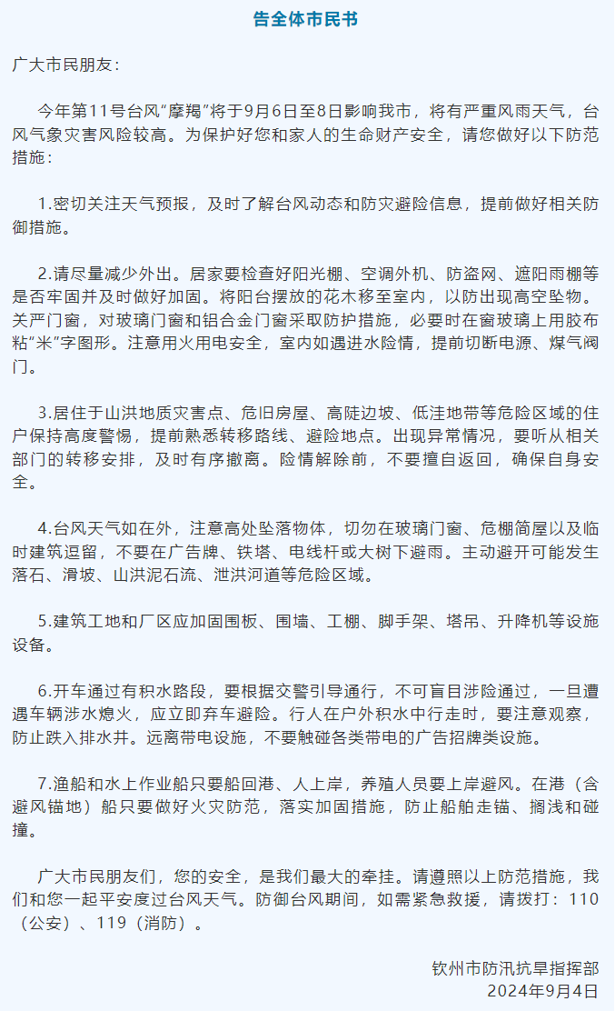 钦州市发布告全体市民书