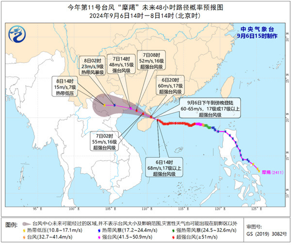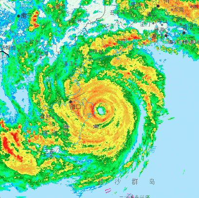 △ 9月6日台风“摩羯”登陆前实时雷达回波图。