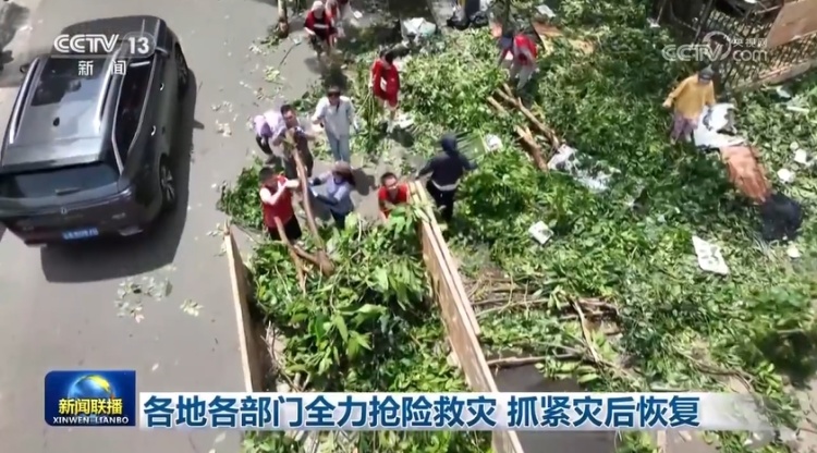 今天,南部战区继续组织指挥驻琼部队官兵和民兵8000多人,出动大型装备车辆500多台(辆),在海南海口、文昌等受灾较严重地区,协助地方政府开展道路清障抢通、电力通信恢复等抢险救援和灾后重建工作。