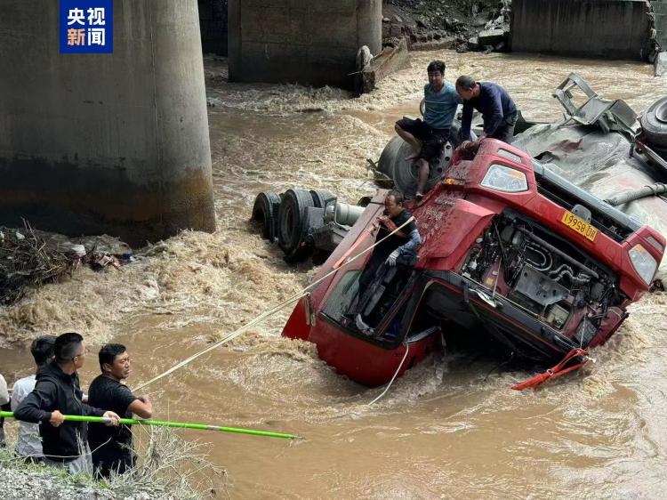 9月10日13时左右,在青海黄南州泽库县国道213线麦秀三号桥处,一辆水泥罐车在行驶过程中冲出护栏,坠入隆务河中。车头严重变形,河水灌入车内,司机被困驾驶室。现场情况危急,路过群众迅速展开救援。