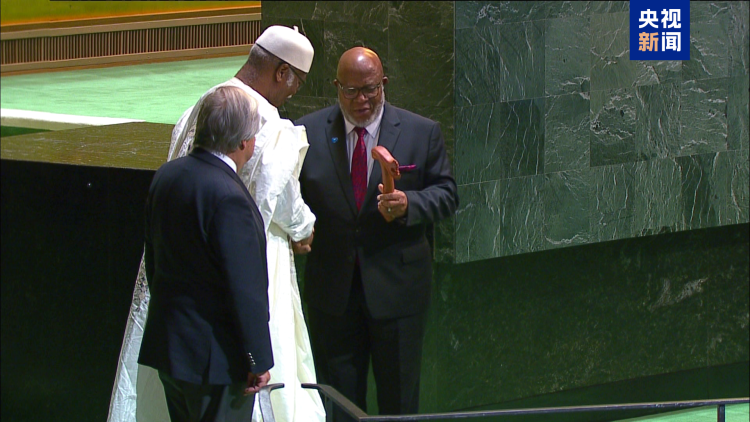 随后,菲勒蒙·扬宣誓就职,丹尼斯·弗朗西斯将象征联大主席权力的木槌转交给菲勒蒙·扬。(央视记者 徐德智)
