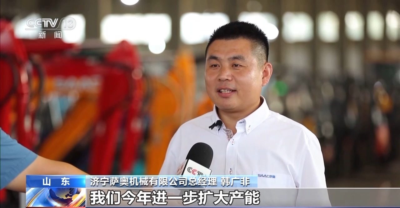 济宁萨奥机械有限公司总经理 韩广非:我们今年进一步扩大产能,增加了2条生产线,我们原有的一部分厂房已经由一层扩建到了两层,生产面积增加了4000平方米左右。现在厂区所有能利用的空间,全部都利用上了。