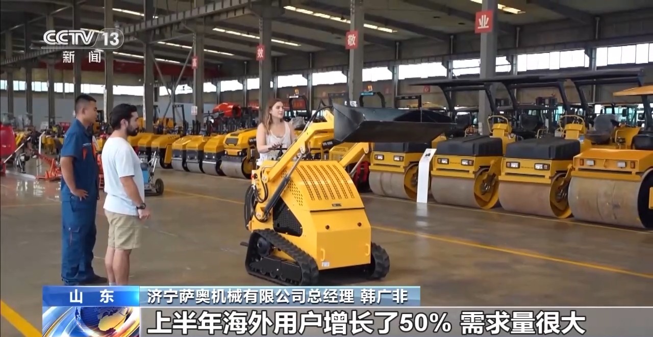 济宁萨奥机械有限公司总经理 韩广非:上半年海外用户增长了50%,需求量很大。今年我们采用了海外仓,将产品提前发到海外仓,国外客户下单后,6至10天就能收到货。