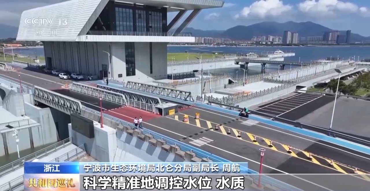 宁波市生态环境局北仑分局副局长 周航:我们通过梅山湾南堤北坝的建设,科学精准地调控水位、水质,使得我们这个湾内呈现蔚蓝大海的颜色。