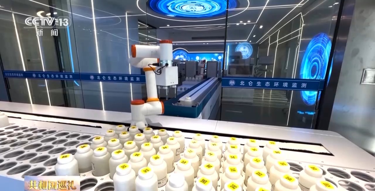 总台记者 方可圆:为了保住这抹蓝色,水质监测需要时刻在线。在这个AI人工智能实验室里,水样的检测基本上实现了全流程、无人化操作,工作效率提高了5到10倍,节约人力成本高达80%以上。