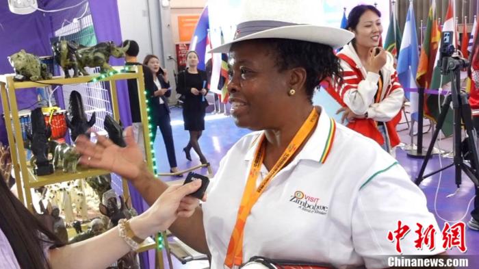 在首钢园举办的“一带一路”共建国家特色文化展示活动中,津巴布韦大使馆展区里的动物造型的工艺品、琳琅满目。津巴布韦大使馆三等秘书图雷西·恩达拉马(Thuresi Ndarama)热情地为观众展示击鼓表演,给现场增添了欢快的氛围。