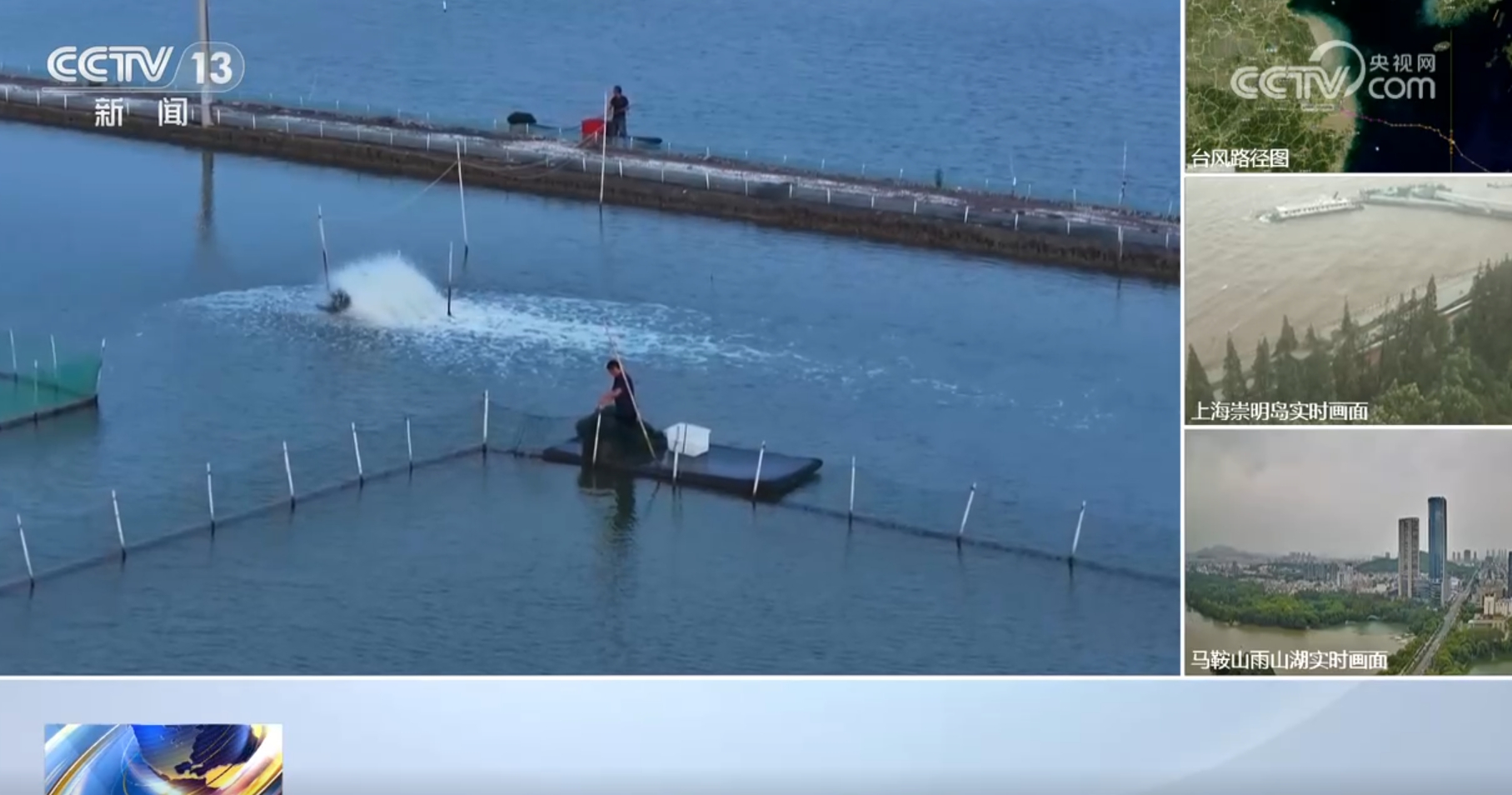 在宁波宁海、慈溪等地,水产养殖基地较多,养殖户也是争分夺秒地抢收水产品,做好房屋加固等工作。