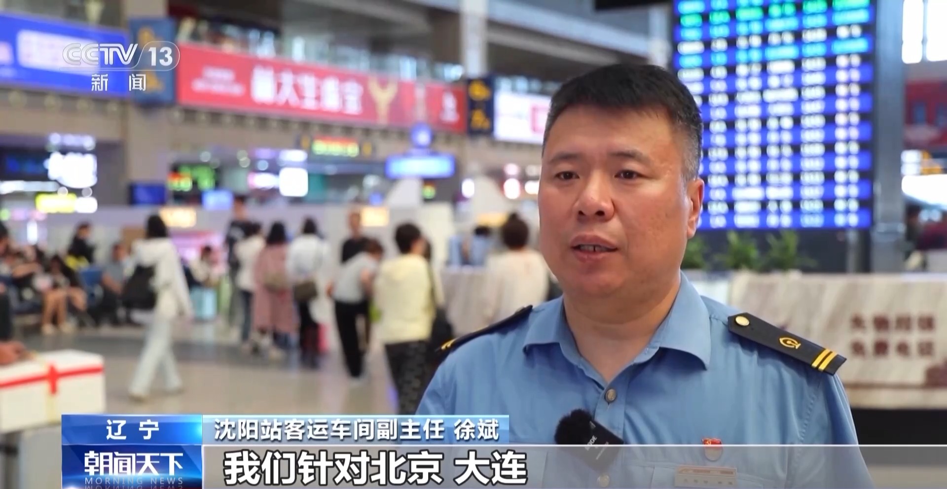 沈阳站客运车间副主任 徐斌:我们针对北京、大连、丹东、山海关、吉林等热门方向加开38对临时旅客列车,为旅客返程提供充足运力保障。