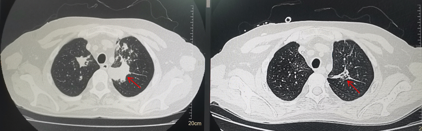 但治疗1个月后,张先生的症状没有明显改善。再次复查胸部CT,竟然发现肺部病灶较前增多,病情恶化了。