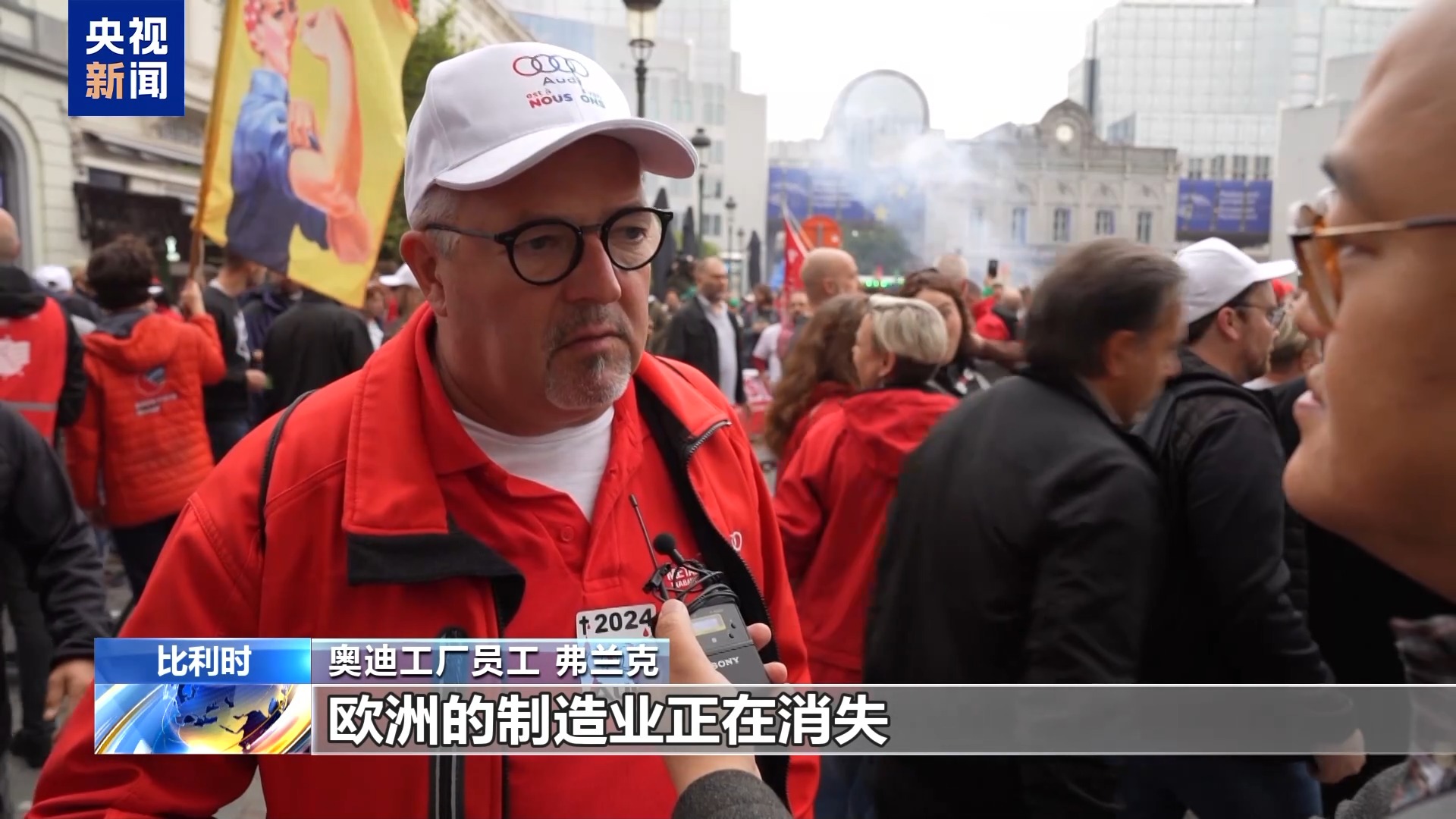 奥迪工厂员工 弗兰克:我们希望向欧洲政界发出一个明确的信号,欧洲的制造业正在消失,制造业的未来必须得到保障。一个国家或一个像欧洲这样的大陆,不能仅仅依靠社会福利机构来运转,制造业必须保留下来。因为它正在逐渐完全流失到欧洲以外,而欧洲政客却对此毫无作为。