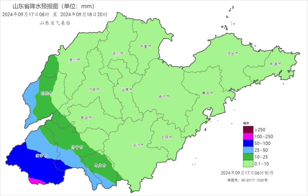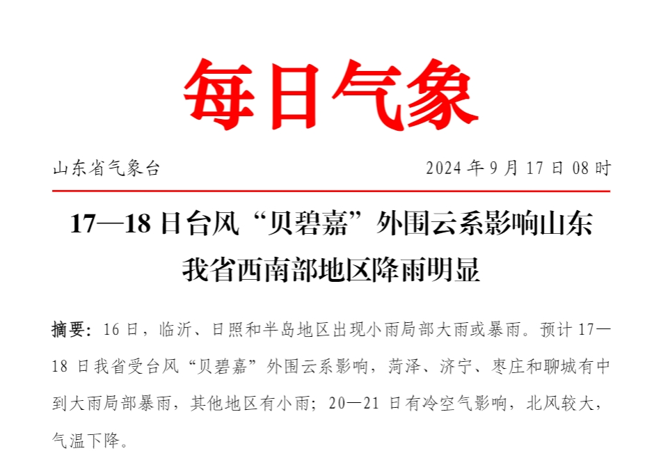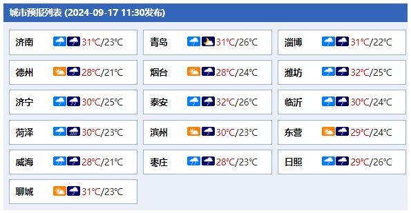 山东省气象台于9月17日08时00分发布最新天气预报: