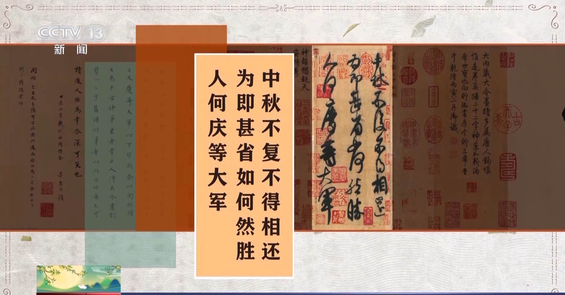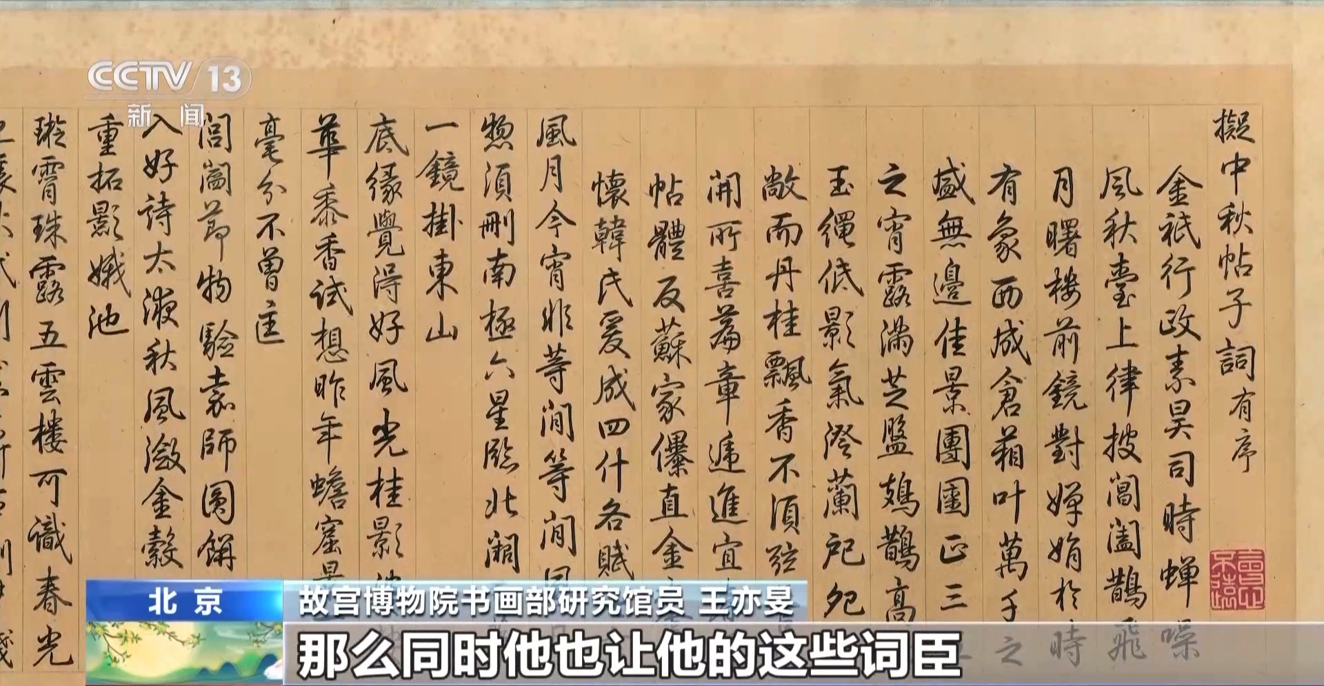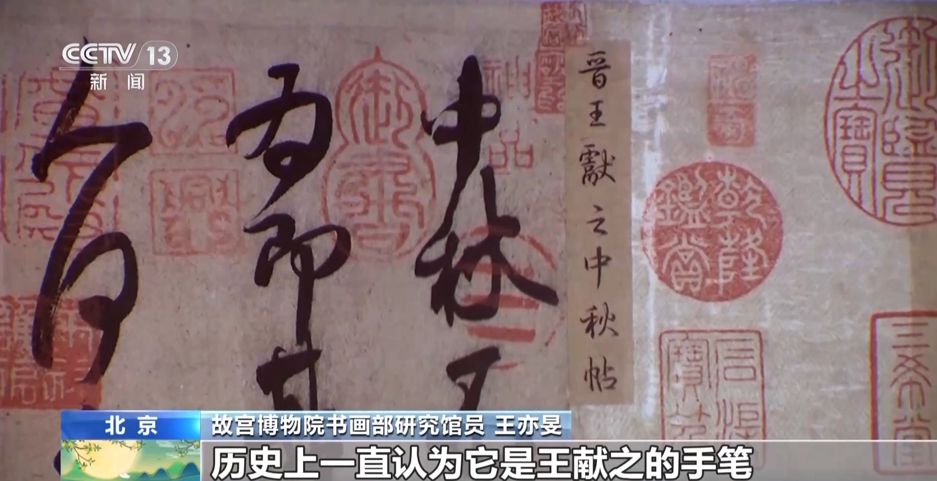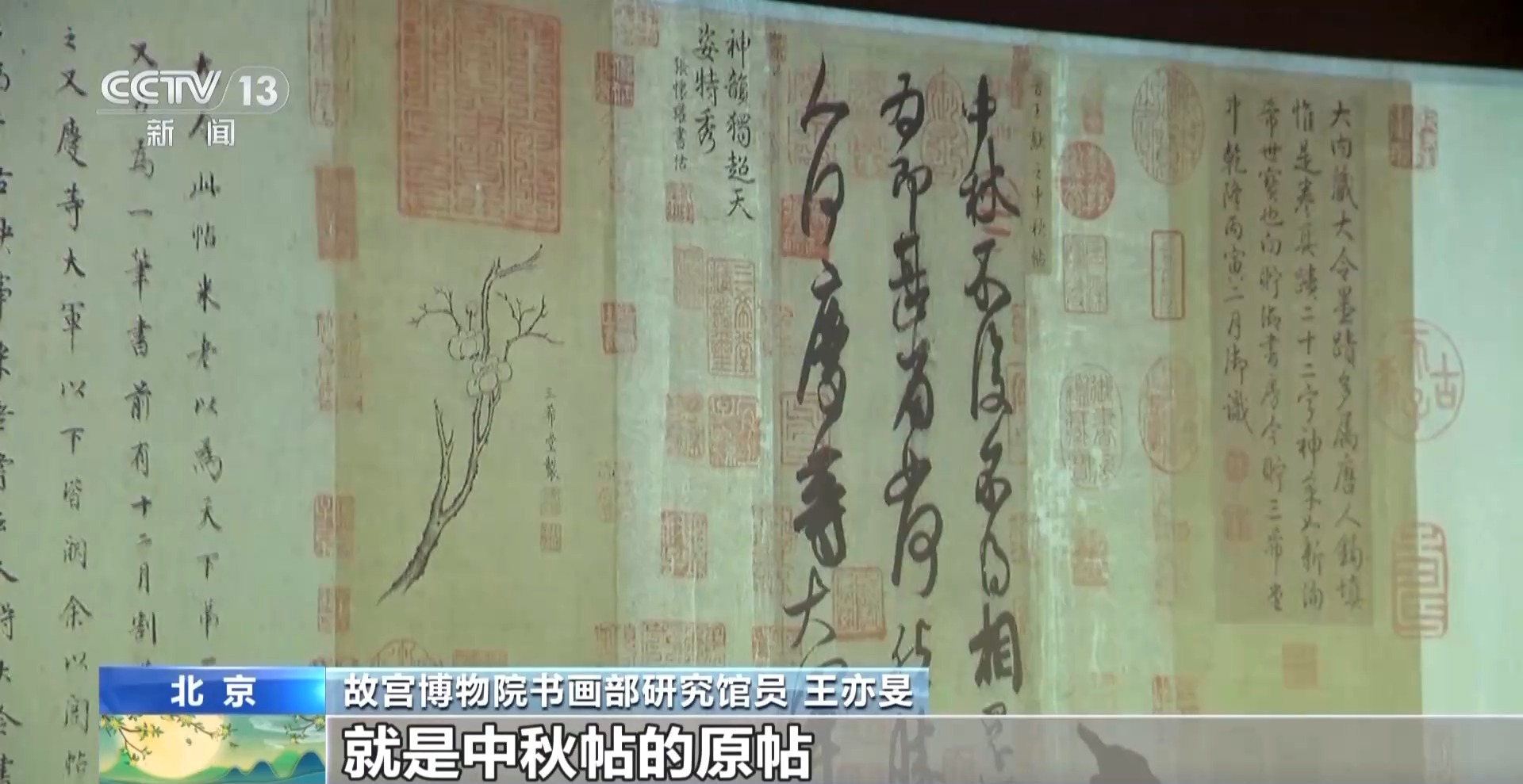 故宫博物院书画部研究馆员 王亦旻:利用《中秋帖》形成一种中秋时节的文化活动也好,文化展示也好,是始于乾隆皇帝。