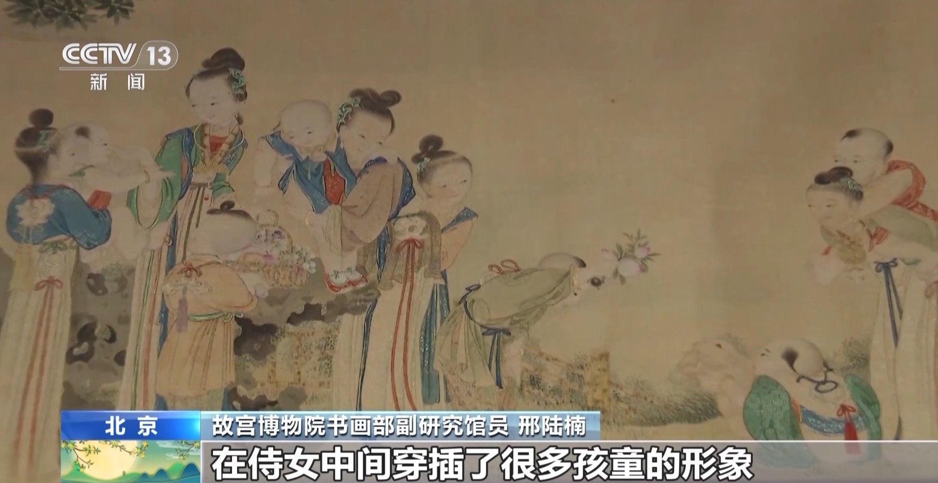 故宫博物院书画部副研究馆员 邢陆楠:我们可以看到,几个孩子正在敲锣打鼓,似乎有一种音效从画面中表达出来。