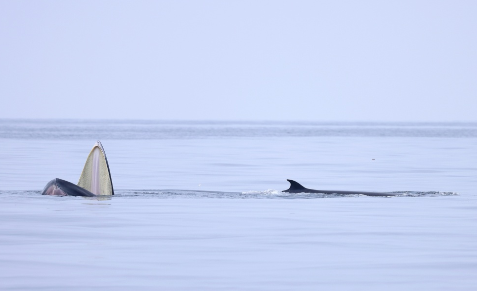 近日,广西科学院、广西海洋科学院海洋哺乳动物研究团队来到涠洲岛,对出现在涠洲岛附近海域的布氏鲸开展调查,并记录到两对布氏鲸母子。