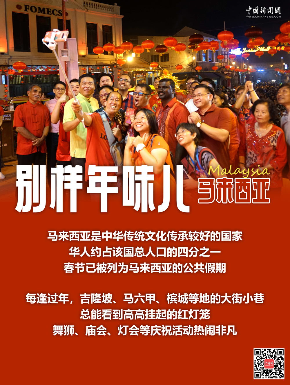 每年春节,也是马来西亚最热闹的时候之一。2024年甲辰龙年之际,吉隆坡天后宫点亮以龙为主题的彩灯装置;马六甲市鸡场街上,由马中两国青少年组成的舞龙队,则共同挥舞着一条近200米的“长龙”穿行而过,迎接春节的到来。