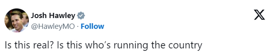 “这是真的吗?这就是在掌管国家的人吗?”密苏里州共和党参议员乔什·霍利问道。