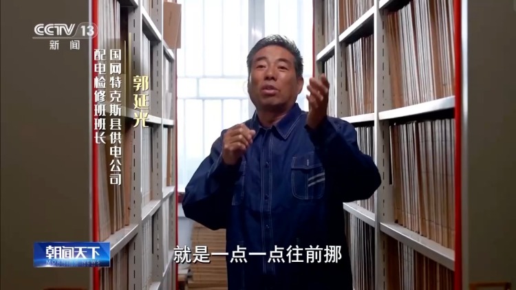 国网特克斯县供电公司配电检修班班长郭延光形容当时的场景:“一根杆子用大绳子绑上,七八十个人扛上,一点一点往前挪。最远的一户将近三公里,要架设五六十根杆子。就算再远的一户,也要让你灯泡亮上。”